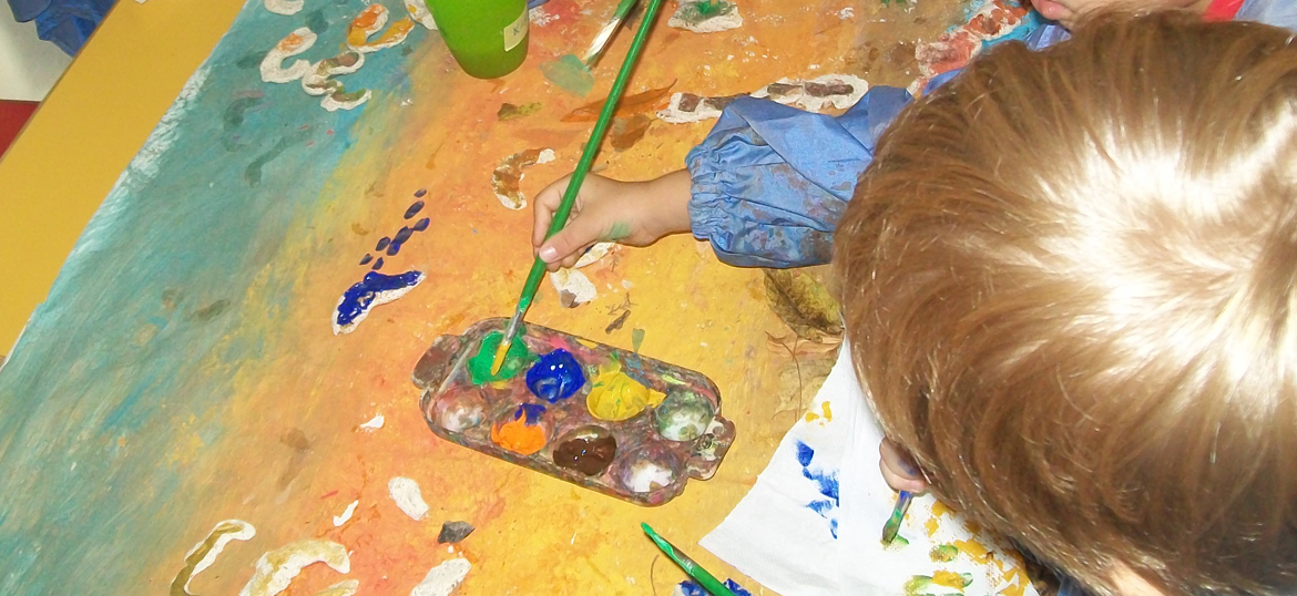 Με ελεύθερη ζωγραφική, πινέλα, δακτυλομπογιές, κηροπαστέλ, μαρκαδόρους, κολλάζ, δημιουργίες με ζυμάρι, πηλό και διάφορα άλλα υλικά…